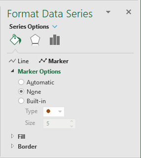 4.3. On the Format Data Series pane, on the Fill & Line tab, in the Marker Options section, select the No Marker radio button:
