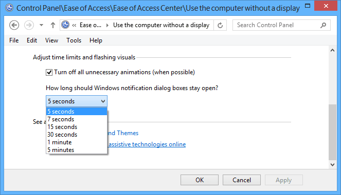 under Adjust time limits and flashing visuals, in the How long should Windows notification