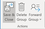 3. When you've finished adding contacts to the Contact Group, on the Contact Group tab, in the Actions group, click the Save & Close button:
