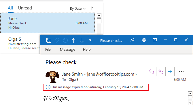 For some purpose, you may need to set or change the expiration date and time for the received message. To do so, open the Properties dialog box by doing one of the following:
