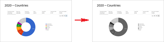 The main advantage of black-and-white printing is that you will not be surprised by the color reproduction with enough-quality printing. The contrasts between colors can sometimes dramatically change the perception of images, diagrams, charts, and even digits. When displaying in the black and white or greyscale, it is very important to check the contrast of the different contiguous elements of the presentation.