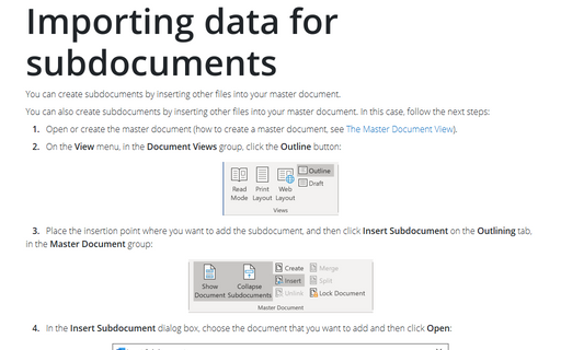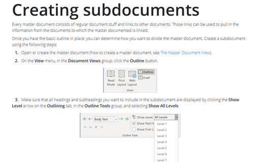 describes how to use those tools to modify subdocuments. How to create a master document, see The Master Document View, and Creating subdocuments for information about