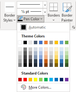 - Select the border color from the Pen Color dropdown list: